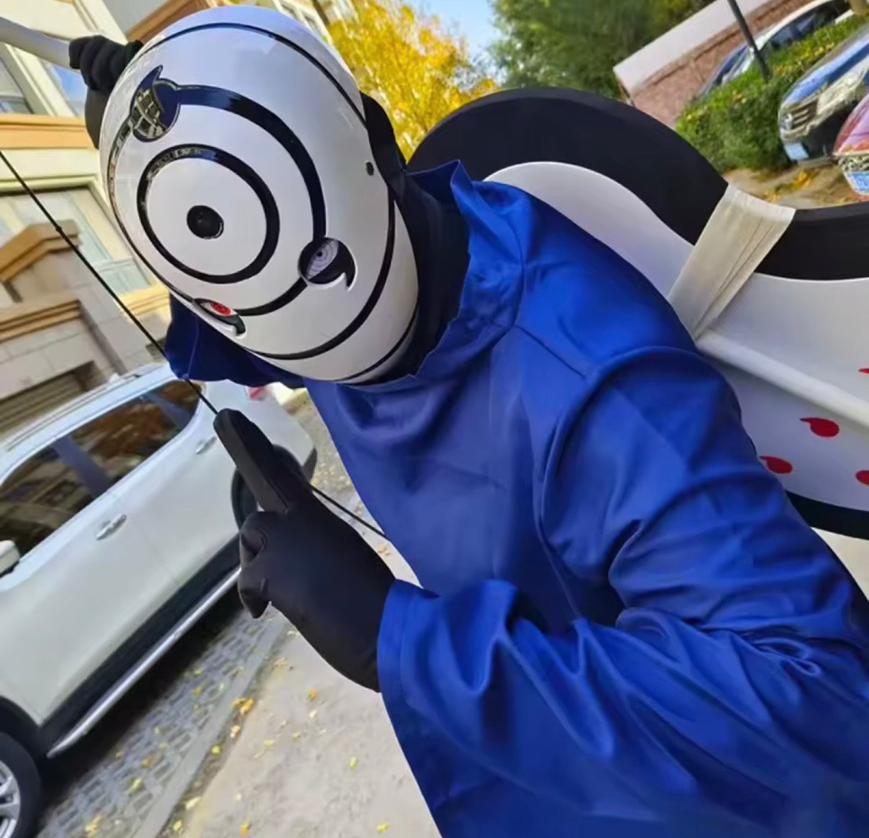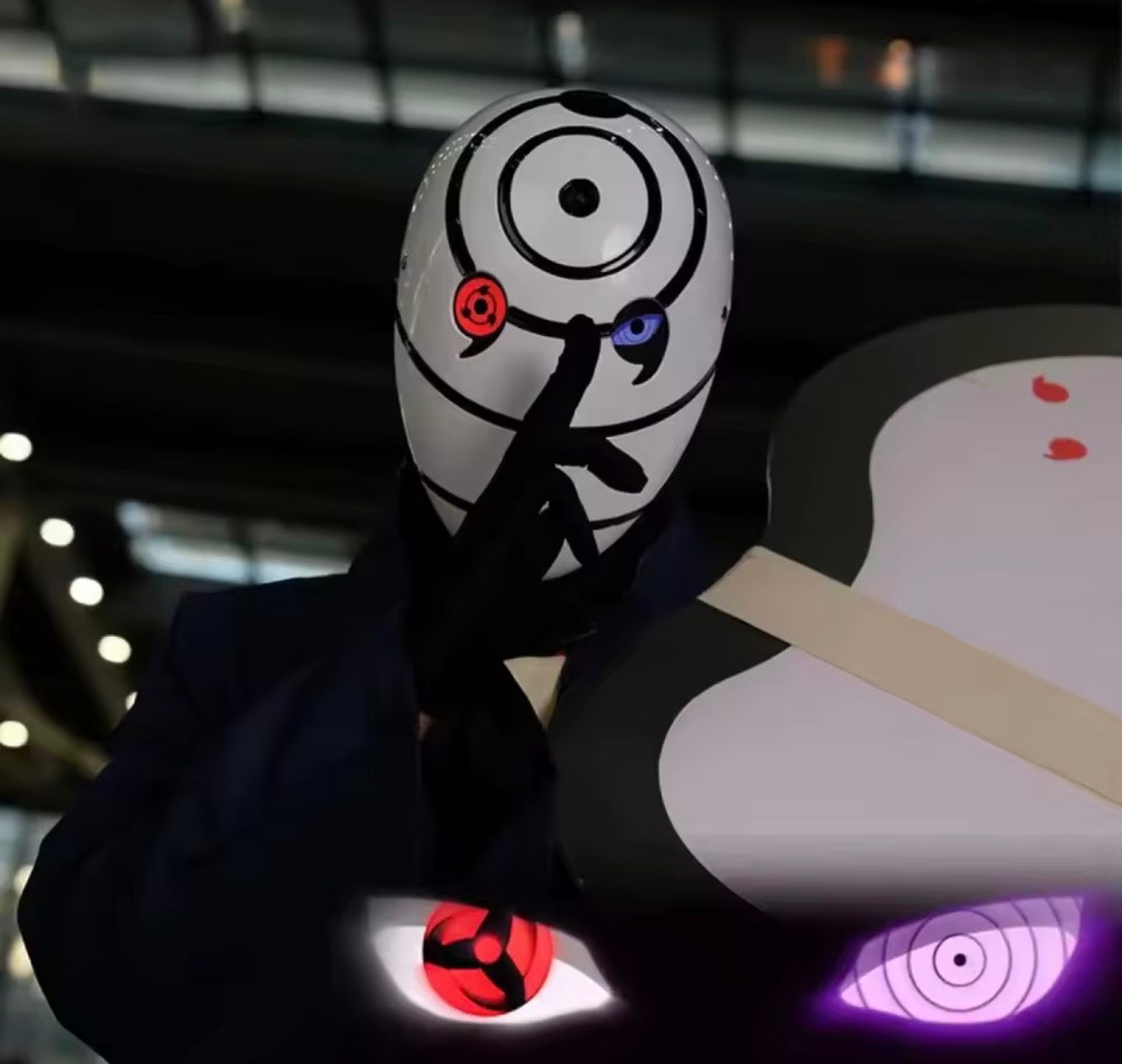 Features glowing Sharingan and Rinnegan eyes for a striking look. Perfect for cosplay, photos, or display.